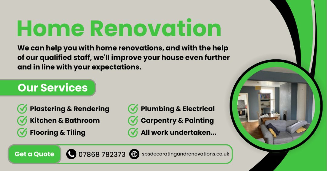 SPS Decorating & Renovations is a reliable home improvement company providing professional decorating and renovation services across Dunstable and the surrounding areas. We specialise in interior and exterior painting and decorating, full home renovations, property refurbishments, plastering and rendering, flooring, tiling, carpentry, and kitchen and bathroom renovations. We work closely with homeowners to deliver high-quality finishes, clear communication, and projects completed to a high standard. All plumbing and electrical work is carried out by qualified trades as part of a fully managed renovation service. Whether you’re refreshing a single room or planning a complete home renovation, SPS Decorating & Renovations offers dependable w